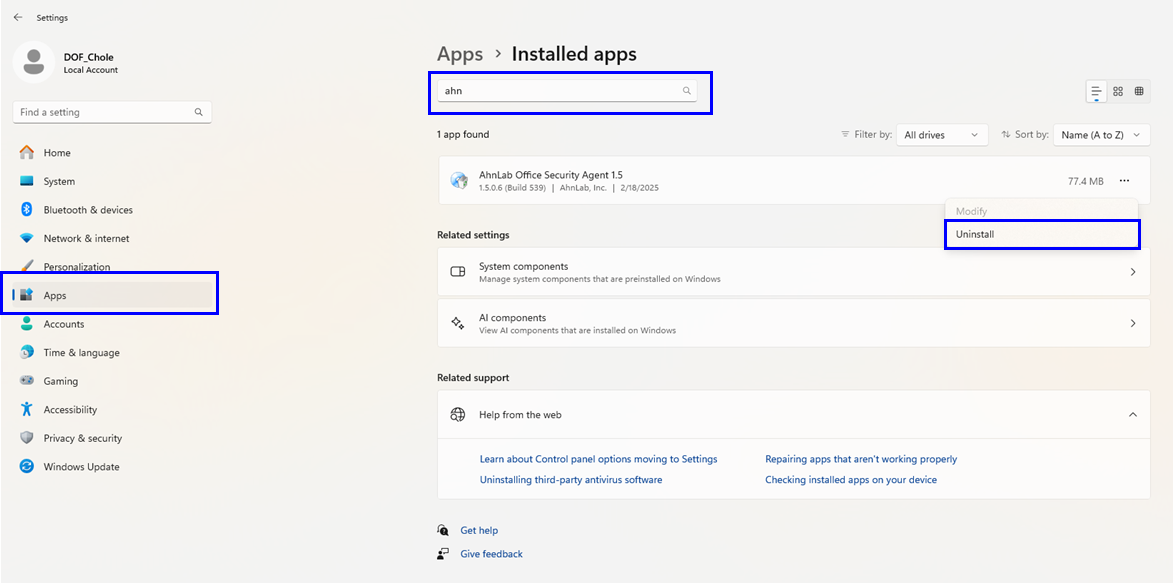 - How to uninstall via Windows Settings: Windows Settings > Apps > Installed apps > Search for the app > Select the app > Uninstall