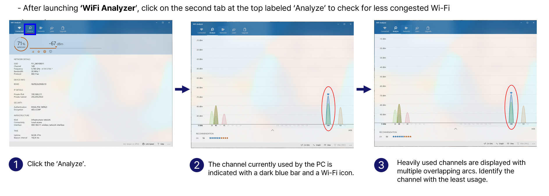 | 4. Use a Wi-Fi Analyzer to check the Wi-Fi channel and change the connection channel if necessary. | 📌Check related information |