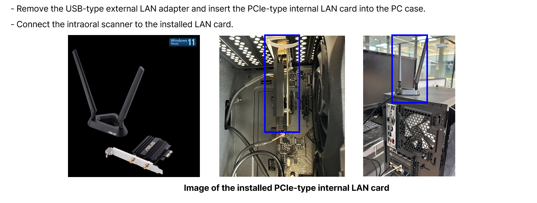 5. When using a desktop PC, replace the USB-type external LAN adapter with a PCIe-type internal LAN card.