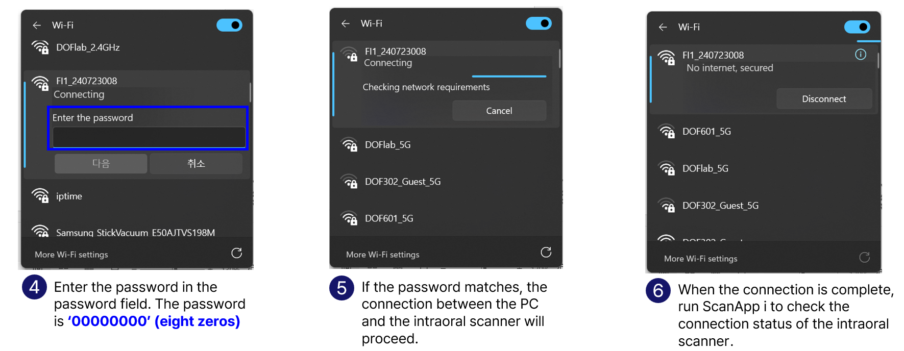 If the FREEDOM i is recognized by the PC but not connected, manually connect the FREEDOM i and PC via Wi-Fi using the following method.