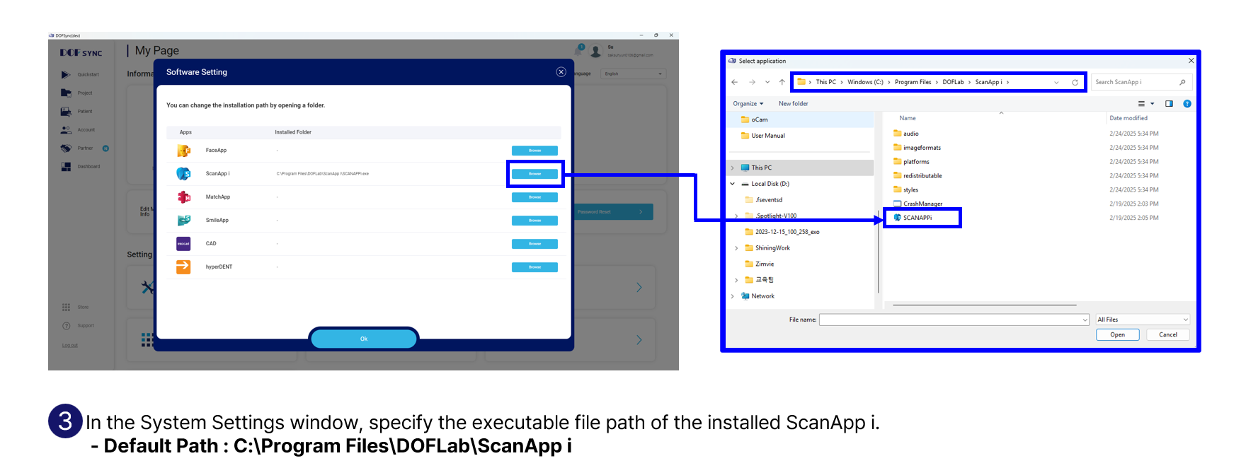 2. Ensure that ScanApp i is correctly linked to DOFSync with the proper file path.ย