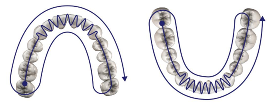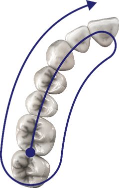 Half-arch scanning begins with the occlusal surface, progressing to the lingual and buccal surfaces.