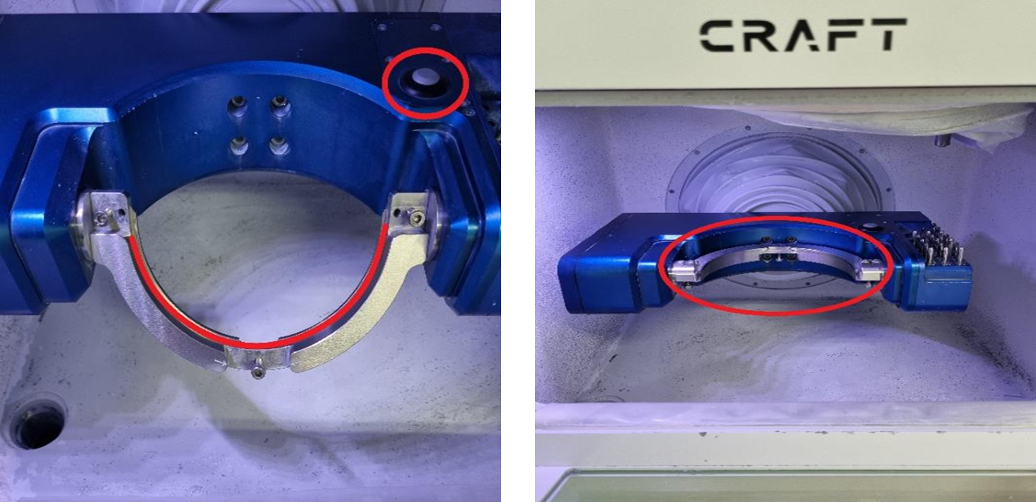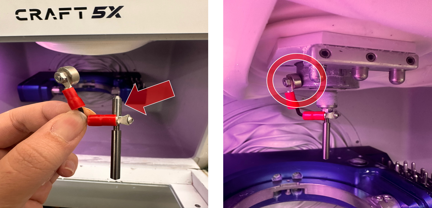 저희가 요청시 사진처럼 캘리브레이션 툴과 지그 홀더가 닿게끔 연결해주세요.