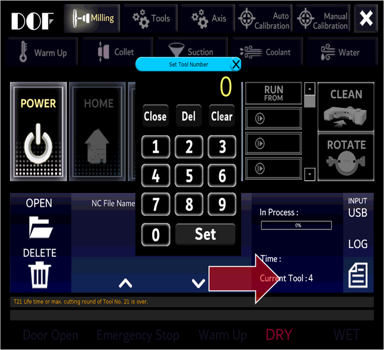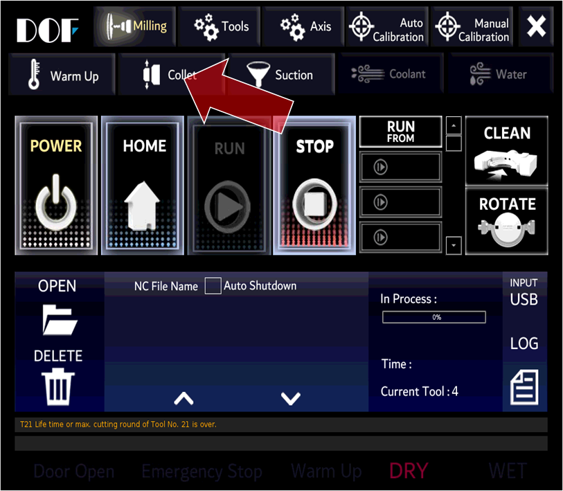 우선 '툴을 잡은 상태에서' 화면의 Collet을 눌러서 현재 잡고 있는 툴을 제거합니다.