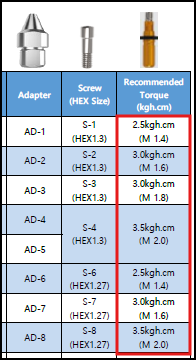 메디덴 리스트에 보면 타입별 권장 토크 량이 있습니다.