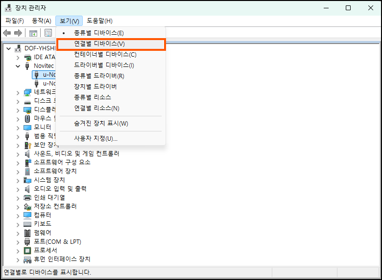 보기 탭 - 연결별 디바이스를 선택합니다.
