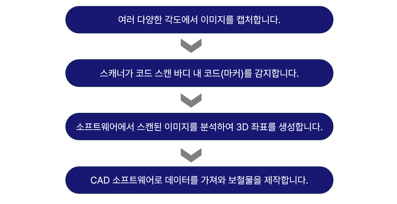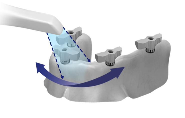 다양한 각도에서 촬영한 이미지를 분석하여 3D 좌표를 계산하기 때문에, 기존 스캐닝 방법(스캔 바디 스캐닝)에 비해 임플란트 위치를 더 정확히 측정할 수 있어 데이터의 정밀도가 더 높습니다.