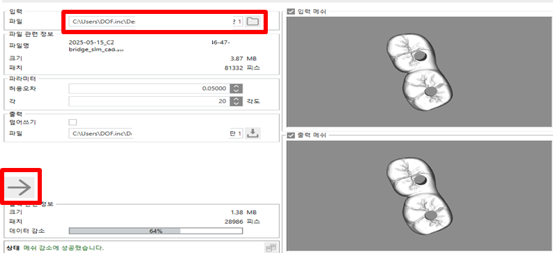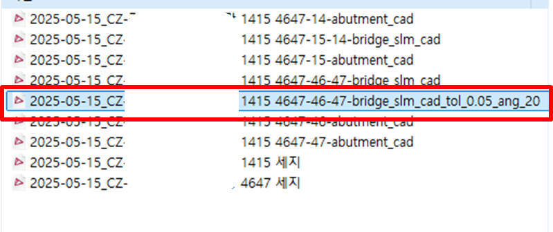 파일란에 문제가 발생하는 STL 파일을 클릭하여 열어주신 후 화살표를 눌러 새로 저장을 해줍니다.