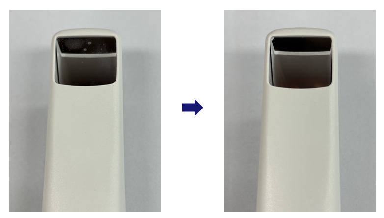 스캐너 팁의 미러에 얼룩이나 오염이 있을 경우, 스캔 성능과 데이터 정확도에 영향을 줄 수 있습니다.