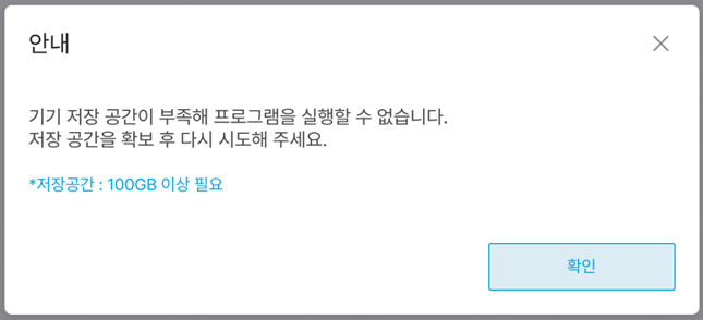 📌 기기 저장 공간이 부족해 프로그램을 실행할 수 없습니다.