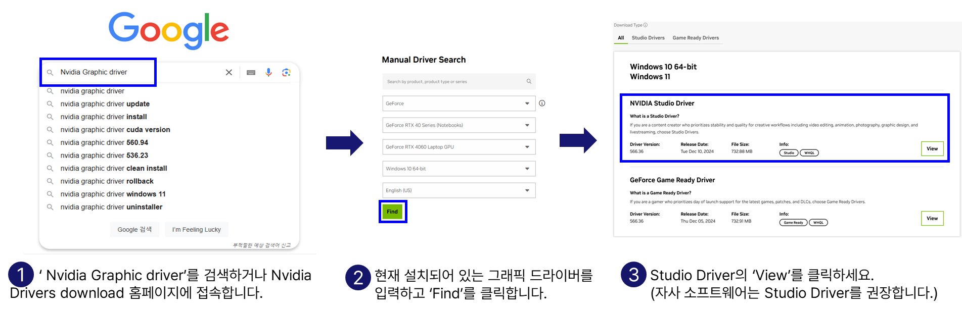 - 그래픽 드라이버 버전 확인 방법: