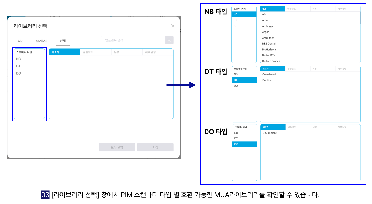 PIM 스캔바디가 사용하려는 임플란트 시스템의 MUA와 규격 상 호환되는지 반드시 사전에 확인해야 합니다.
